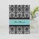 Custom Bat Mitzvah party invitations in elegant turquoise blue, black and white classic floral damask pattern. Add your name and party details for a unique and stylish Bat Mitzvah party invitation.