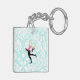 Teal Damask Pattern Ice Skating Key Ring