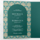 Teal Damask Pattern Moroccan Arch Wedding Photo Tri-Fold Invitation