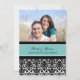 Engagement party photo invitations in elegant turquoise blue, black and white classic floral damask pattern. Fully customisable with your engagement party details and your own photo. Also available in a wide range of matching wedding products.