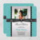 Black and teal blue damask bow picture personalised sweet sixteen birthday party invitation.