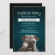 Teal Damask Pug & Wine Cocktail Party Invitations