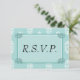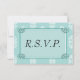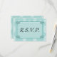 A very elegant, custom wedding RSVP announcement in soft aqua / teal, part of the ''Teal Damask'' matching set of wedding stationery featuring a light teal and white damask pattern with teal ornament.