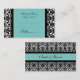 Wedding table place setting cards in elegant turquoise blue, black and white classic floral damask pattern, also available in many matching wedding products, contact us to request a colour change or custom design.