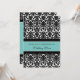 Elegant wedding vow renewal invitations in turquoise blue, black and white floral damask pattern with fully customisable text to include your vow renewal ceremony details.