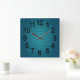 Teal Dark Blue Weave | Bold Numbers Square Wall Clock
