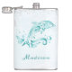 Enjoy your favourite alcoholic beverages anytime with a Teal Dolphin Vinyl Wrapped Flask. Flask design features a vibrant metallic dolphin against a muted seascape adorned elegant scrolls. Additional gift items available with this design as well.