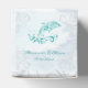 Personalise a unique wedding favour box for guests with this unique Teal Dolphin Wedding Favour Box. Favour box design features a metallic styled dolphin against a muted ocean waves background adorned with elegant scrolls. Personalise with the groom and bride's names along with the wedding date. Additional wedding stationery available with this design as well.