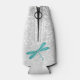 Keep your bottle beverages cold during summer outings with a Teal Dragonfly Personalised Bottle Cooler. Cooler design features a colourful dragonfly, a soft white leafy vine against a light grey grunge damask background with an area to personalise with your name. Additional gift items available with this design as well as a variety of colours.
