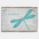 Add a touch of colour to your living or bedrooms with a Teal Dragonfly Personalised Throw Blanket. Blanket design features a colourful dragonfly, a soft white leafy vine against a light grey grunge damask background with an area to personalise with your name. Additional gift items available with this design as well as a variety of colours.