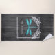Enjoy your day at the beach or poolside with a Teal Dragonfly Rustic Personalised Beach Towel. Towel design features a vibrant dragonfly adorned with delicate foliage against a dark grey rustic wooden background. Additional gift items available with this design as well as a variety of colours.