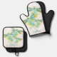 Teal Dragonfly splatter personalised Oven Mitt & Pot Holder Set