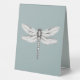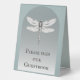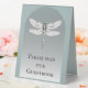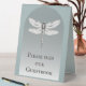 Create a simple and modern sign for your guestbook table with this Teal Dragonfly Wedding Table Tent Sign. Sign design features a simple and elegant dragonfly with modern typography for a message to guests to please sign your guestbook. Perfect for the couple having a dragonfly theme wedding. Additional wedding stationery and supply available with this design as well.