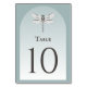 Add a modern touch to your reception tables with this Teal Dragonfly Wedding Table Number Card. Card design features a simple and elegant dragonfly with elegant script and modern typography for the bride and grooms' names and wedding details. Perfect for the couple having a dragonfly theme wedding. Additional wedding stationery and supply available with this design as well.