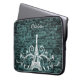 Teal Eiffel Tower Grunge Laptop Sleeve