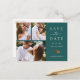 Teal Fall Photo Announcement Postcard. Announce your special day with this charming photo collage save the date postcard. Featuring space for three of your favourite engagement photos, the design is framed with hand-painted watercolor foliage in terracotta, burnt orange, and copper tones alongside beige florals, all on a rich teal background. The back includes wedding details in elegant typography. It’s a heartfelt way to introduce your theme while giving guests a personal glimpse into your love story. Add your photos and create a keepsake worth saving.