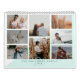 A Modern and cool family monogram name pastel teal blue 20 photos collage grid with a geometric abstract colour block. All the colours are editable..