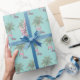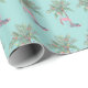 Teal Flamingo In Santa Hat with Palm Tree & Lights Wrapping Paper