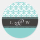 Teal Fleur de lis Wedding Monogram Sticker. This wedding sticker displaying your new married initials (bride and groom with a script last name initial) can be used for cake or favour boxes, candy bags, travelling guest goodie bags and much more! Teal Fleur de lis Wedding Monogram Sticker