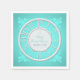 Napkin in teal for the Floral Around the Clock Shower Suite. A silver clock face is the focal point of the design. Floral silhouettes surround it, adding a soft, bridal motif. Choose from three different background colours: teal, pink, or purple. Spice up your themed bridal shower with matching, personalised napkins!