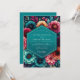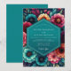 A rich tapestry of deep teal blooms and autumnal hues creates a romantic and opulent atmosphere. Vibrant floral arrangements in jewel tones are set against a lush, dark background, evoking a feeling of enchanted romance. This design features poppies and chrysanthemums in a striking, moody palette.