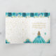 This elegant and glamorous birthday thank you card features a beautiful princess with blonde hair and fair skin in a teal blue ball gown. The text combines handwritten script and modern sans serif fonts for a classy and sophisticated look. The floral arrangements, butterflies and gold confetti create the perfect blend of rustic and chic.