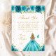 Teal Floral Blonde Hair Princess Birthday Party Thank You Card