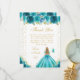 Teal Floral Blonde Hair Princess Sweet Sixteen Thank You Card