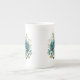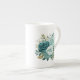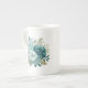 This lovely bone China mug is shown in white with a pretty teal shade's floral watercolor print.