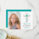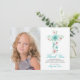 This one photo First Holy Communion thank you card features a teal floral watercolor cross with pink flowers and greenery leaves and foliage. Perfect for any religious event: First Communion, Baptism, Christening or Confirmation.