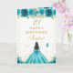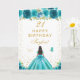 Teal Floral Dark Skin Girl Happy Birthday Card
