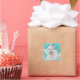 A modern, floral sticker with abstract flowers in teal and white against a light grey background. The card is easy to customise with your wording, font, font colour and paper shape options.