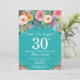 Teal Floral Surprise 30th Birthday Invitation
