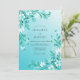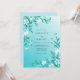 Delicate teal and white blossoms dance across a soft gradient background. Lush greenery entwines with the blooms, creating a romantic and airy feel. This design evokes a sense of natural beauty and serene elegance for a special occasion.