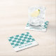 Teal flowers custom name white square paper coaster