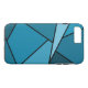 Safeguard your iPhone 8 Plus/7 Plus from shocks with an impact resistant Case-Mate Tough case featuring a stylish geometric design of polygons in various shades of teal outlined in black. A pale blue-green triangle slashes in from the upper left with an array of progressively darker teal quadrangles and other shapes spiralling around it from light to dark. Two dark greenish-blue shapes ground the bottom of the original design.