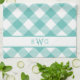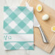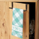Our pretty monogrammed kitchen towel updates the classic gingham motif in a generous scale, diagonal orientation and summery colour palette of turquoise teal and white. Add a three initial monogram in coordinating aqua at the bottom if desired for a unique housewarming present or hostess gift.