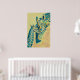 An affectionate mother and baby giraffe in shades of teal, aqua and tan