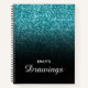 Teal Glitter Black Ombre Personalised Drawing Notebook