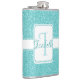Enjoy your favourite alcoholic beverage while you're on the go with a personalised Teal Glitter Personalised Flask. Flask design features a teal glitter background and fancy banner where you can add your name and monogram for personalisation. Additional gift items available with this design as well. Please contact me directly if you need assistance with personalising this item. Glitter is artistically rendered and final product will not contain actual glitter.