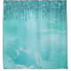 Teal Glitter Droplets on Shiny glittering blue and turquoise metal Marble Shower Curtain