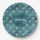 Teal Glitzy Glam Peacock Feathers Paper Plate