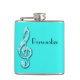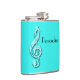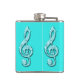 Teal Glitzy Sparkly Music Notes Hip Flask