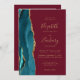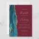 Teal Gold Agate Burgundy Photo QR Code Wedding Invitation