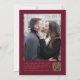 The left-hand edge of this elegant modern wedding invitation features a teal blue watercolor agate border trimmed with faux gold glitter. The customisable text combines gold-coloured handwriting, copperplate and italic fonts on a burgundy red background. Add your favourite photo to the reverse side, along with additional text and a QR code to send guests to your wedding website.