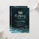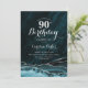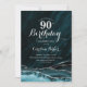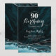 Teal and silver agate 90th birthday party invitation. Elegant modern design featuring teal blue turquoise watercolor agate marble geode background, faux glitter silver and typography script font. Trendy invite card perfect for a stylish women's bday celebration. Printed Zazzle invitations or instant download digital printable template.