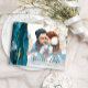 This elegant horizontal save the date postcard features a teal watercolor agate border trimmed with faux gold glitter. Easily replace the sample image with your own photo. The customisable text combines teal handwriting script and copperplate font; a white gradient filter helps make the text pop. Add your return address and additional details to the reverse side.