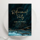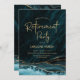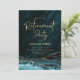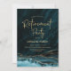 Teal blue and gold agate retirement party invitation. Elegant modern design featuring turquoise watercolor agate marble geode background, faux glitter gold and typography script font. Trendy invite card perfect for a stylish women's retirement celebration. Printed Zazzle invitations or instant download digital printable template.