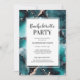 Trendy and modern Bachelorette or Hen's Party invitation featuring teal and gold alcohol ink pattern and matching back page.