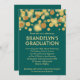 This stylish design features gold bokeh dots and a teal blue background. The mood of this announcement is one of celebration and excitement. Personalise this elegant graduation announcement with your information. If you need space for more information, the back of the announcement has plenty of room.